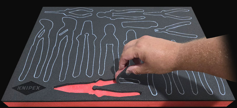 Place your custom foam tray in your toolbox and enjoy perfectly organized, protected tools!